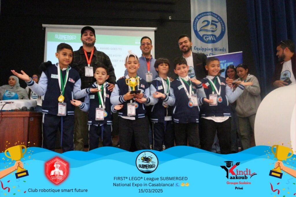 Congratulations to Team Smart Futur , representing Yaakoub Al Kindi School Group , on their outstanding achievement – winning the Best Model Award at the National Robotics Exhibition in Casablanca, hosted by George Washington Academy!