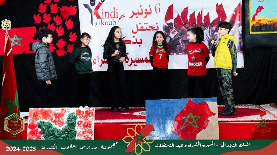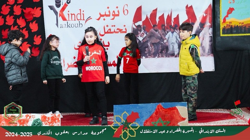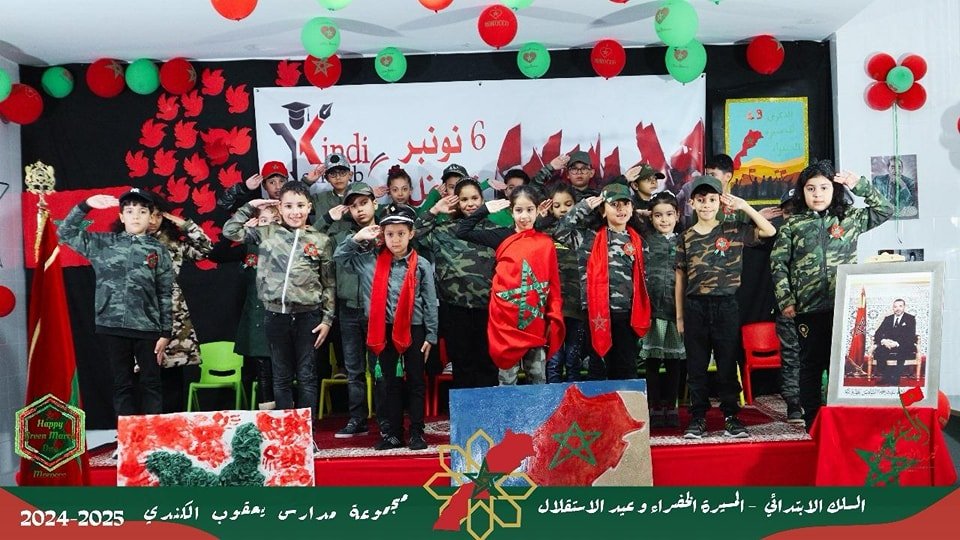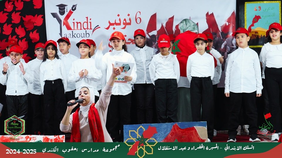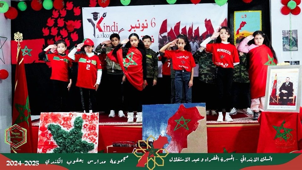 بمناسبة ذكرى المسيرة الخضراء المظفرة وعيد الاستقلال المجيد، نظمت مجموعة مدارس يعقوب الكندي يوم الجمعة 22 نونبر 2024، تحت شعار “حب الأوطان من الإيمان”، نشاطًا تربويًا تخلله عروض مسرحية وأغانٍ وطنية، كان الهدف منها ترسيخ القيم الوطنية في نفوس الناشئة
